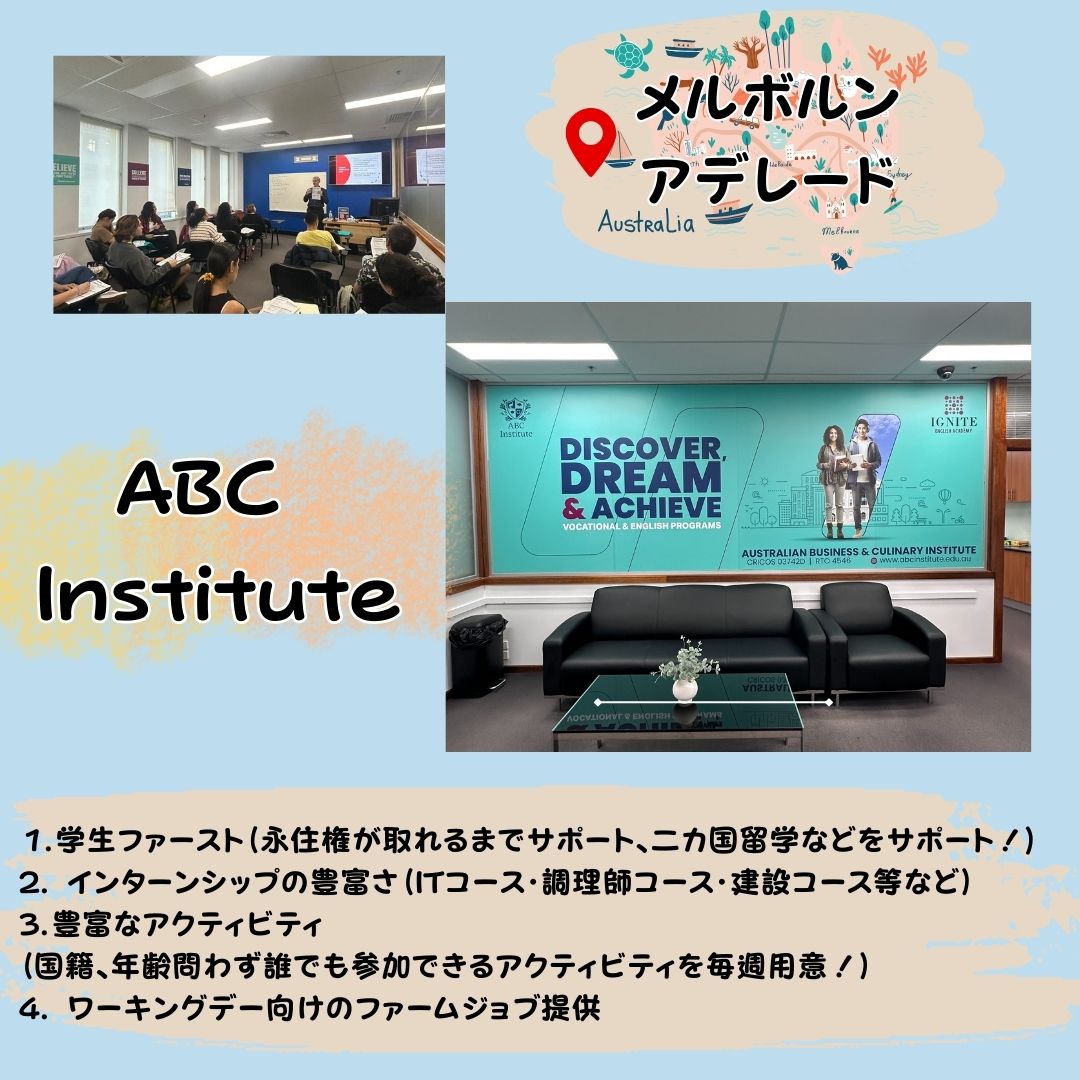 今回はオーストラリアにあるABC Institute様と共同留学イベントとなります。